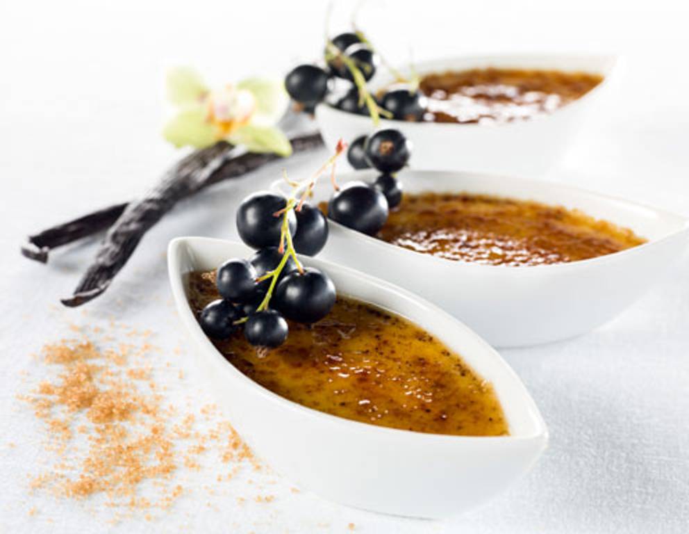 - bestreuen und die Crème Brûlèe mit dem Gasbrenner karamellisieren.