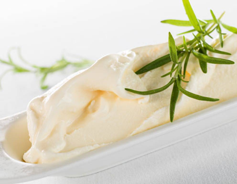 - Die Milch und die Guma Pâtisserie Creme in einem Topf aufkochen. Den Rosmarinzweig dazugeben und mitköcheln lassen.