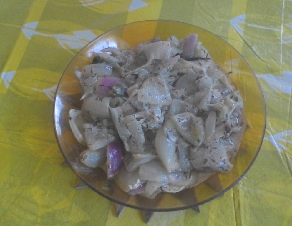 Zu dem Zwiebelauflauf nur Weißbrot servieren, schmeckt aber auch mit Kartoffelpüree. Schnelles Gericht für Low Carb, wenn man die Beilage wegläßt