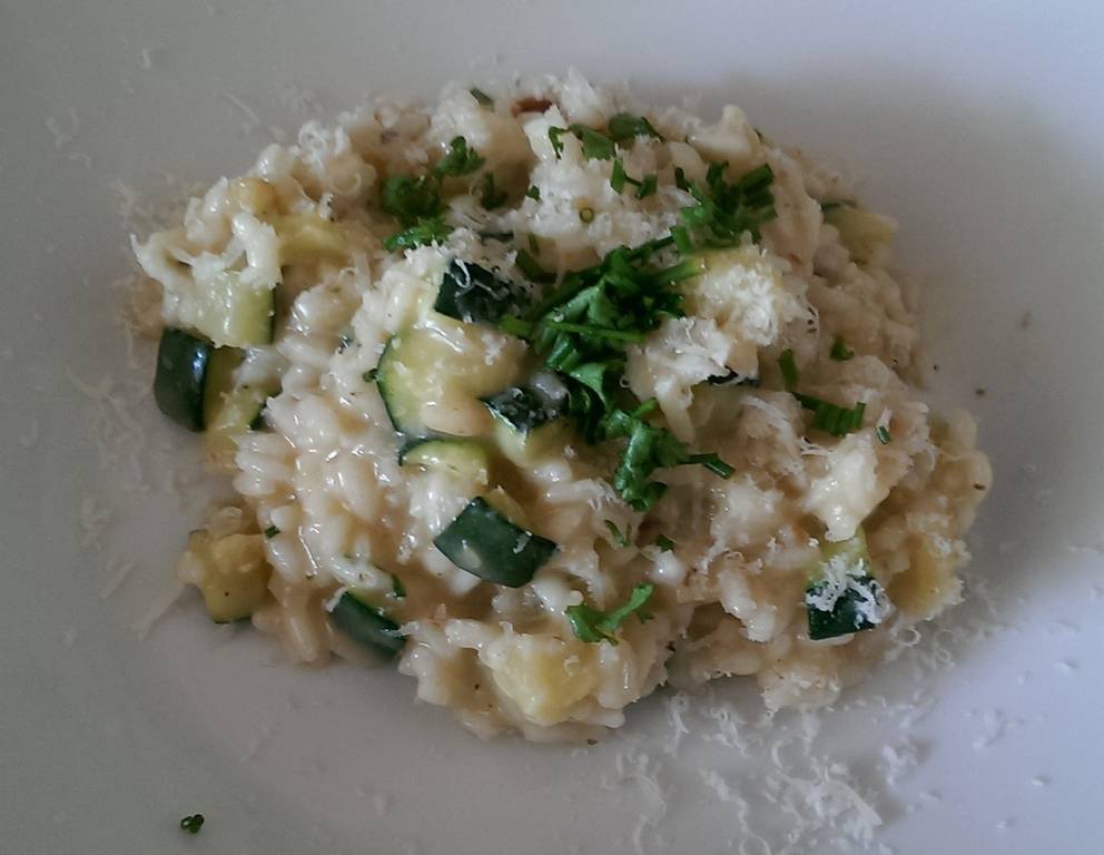 Mengen Sie mit dem Parmesan auch noch einen Teelöffel Butter unter das fertige Zucchinirisotto.