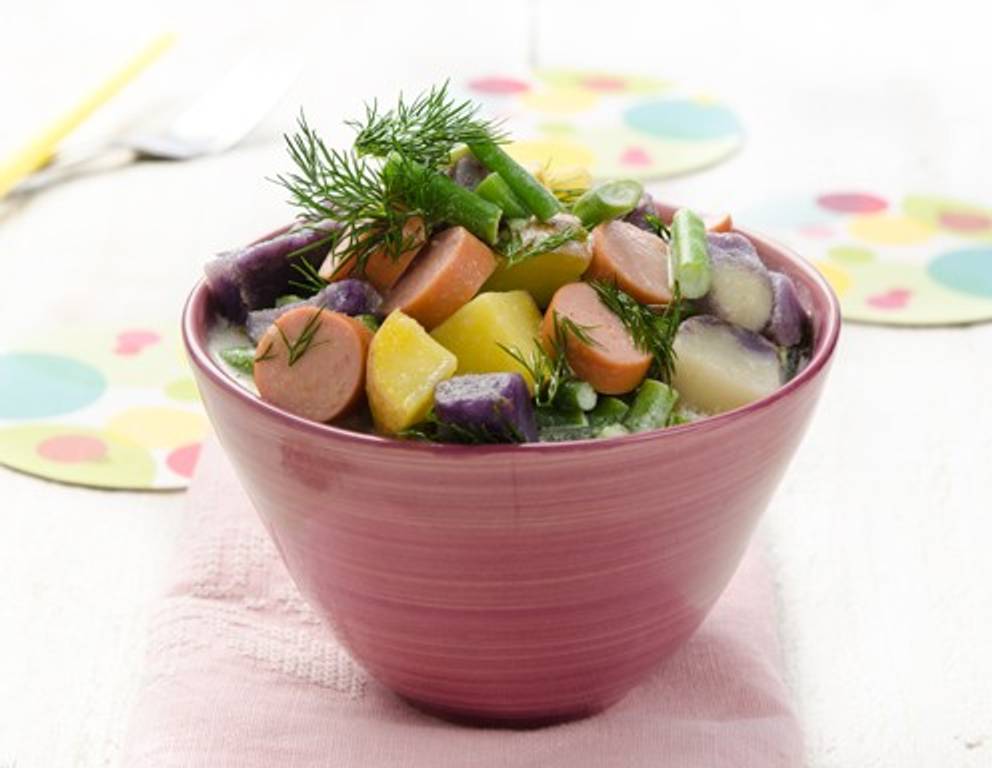 - Für die Dillfisolen mit Würsteln Erdäpfel kochen, auskühlen lassen, schälen und in mundgerechte Stücke schneiden.