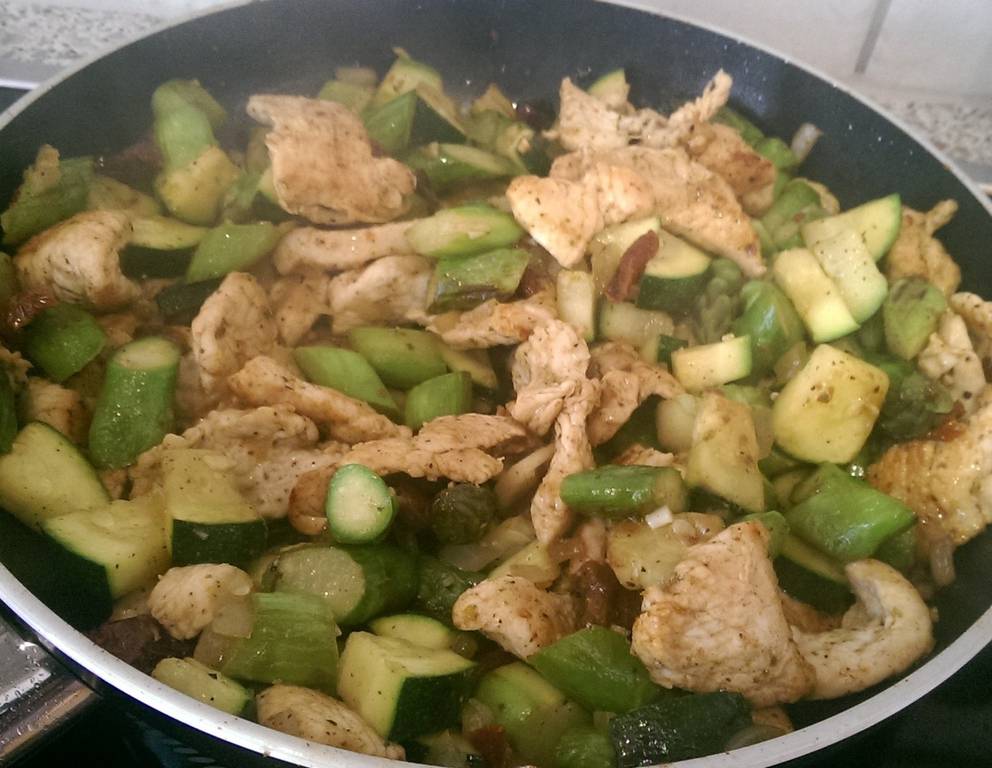 Für ein Hühner-Gemüse-Gröstl verwendet man am besten Gemüse der Saison oder braucht die Reste im Kühlschrank auf.