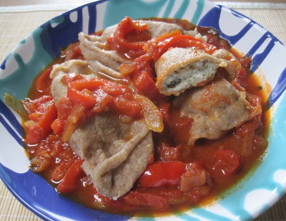 Das Letscho passt als Beilage nicht nur zu den Teigtaschen sondern auch zu anderen Gerichten, zum Beispiel zu kurz gebratenem Fleisch.