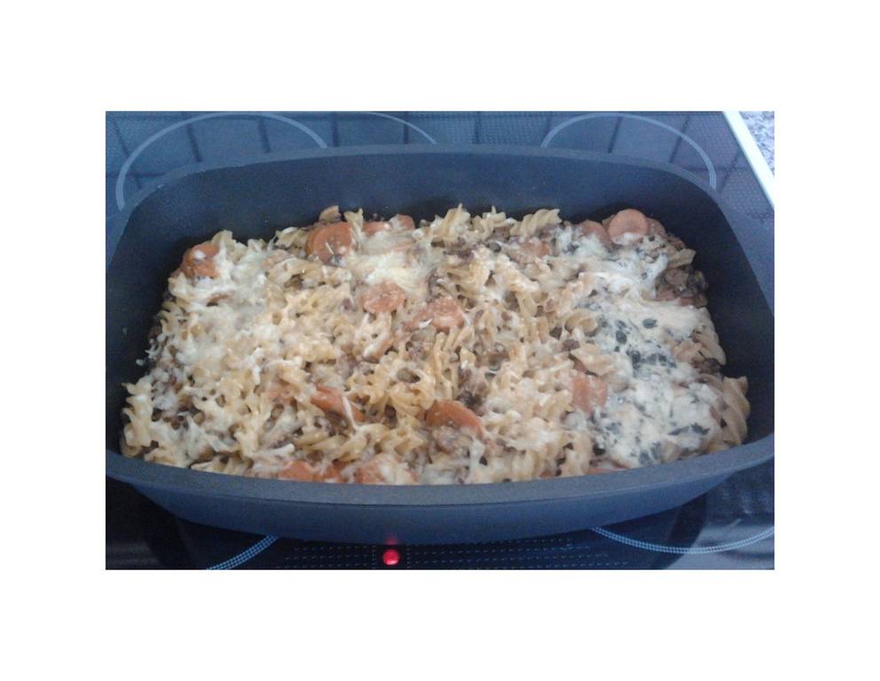 - Für den Nudelauflauf die Zwiebeln fein hacken und in etwas Öl braun anrösten (währenddessen die Karotten in Scheiben schneiden). Den Knoblauch und das Faschierte zu den Zwiebeln geben und gut anbraten (einstweilen die Champignons waschen und klein schneiden).