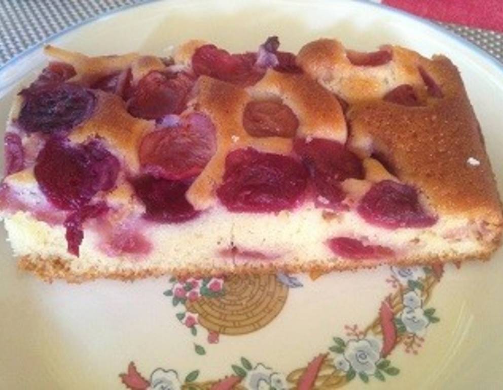 - Den Kuchenteig fingerdick auf ein gebuttertes, bemehltes Kuchenblech streichen und mit den Kirschen bestreuen. Bei mittlerer Hitze backen.