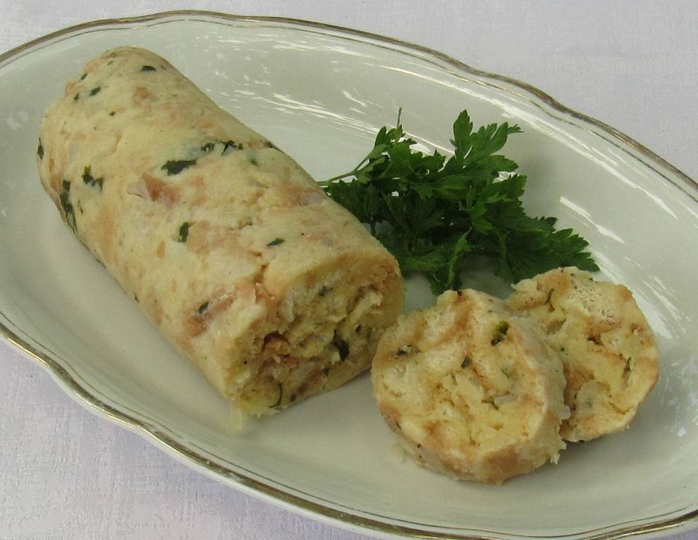 Der Serviettenknödel ist eine gute Beilage zu Selchfleisch oder passt auch als Suppeneinlage. Wunderbar passen auch geröstete Speckwürfel in den Teig.