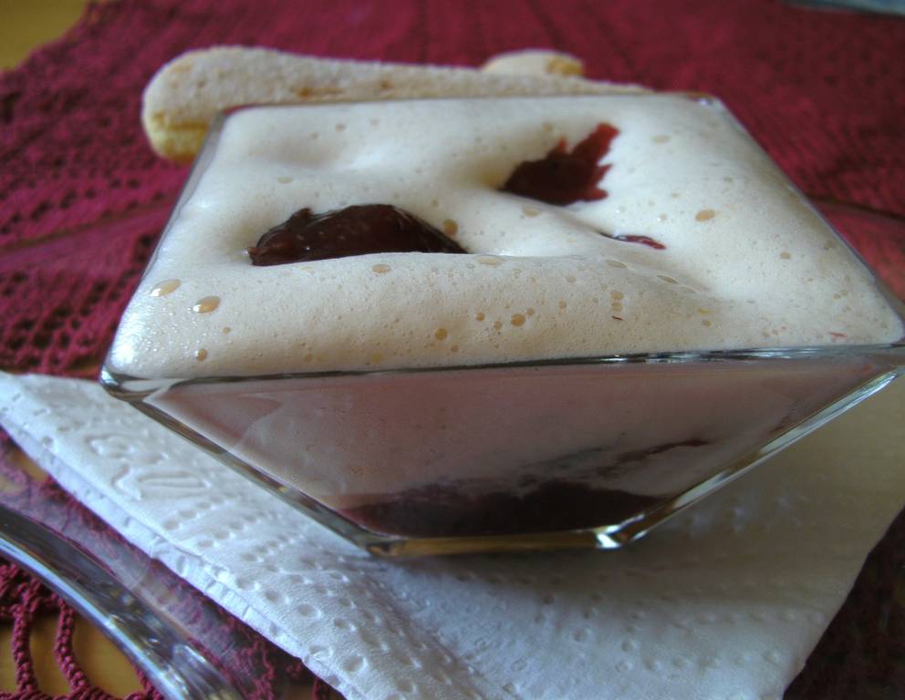 - In ein kleines Glasschüsserl je 2 TL Erdbeermarmelade und 6 kleine Erdbeeren (oder in Stücke geschnitten) geben. Mit Sabayon auffüllen und nochmals 2 TL Erdbeermarmelade daraufgeben.