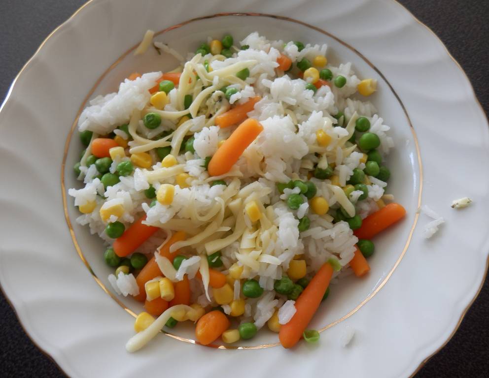 Für eine asiatische Note mischen Sie eine zerpflückte Eierspeise unter den Gemüsereis und braten ihn mit etwas Sojasauce in einer Pfanne an.