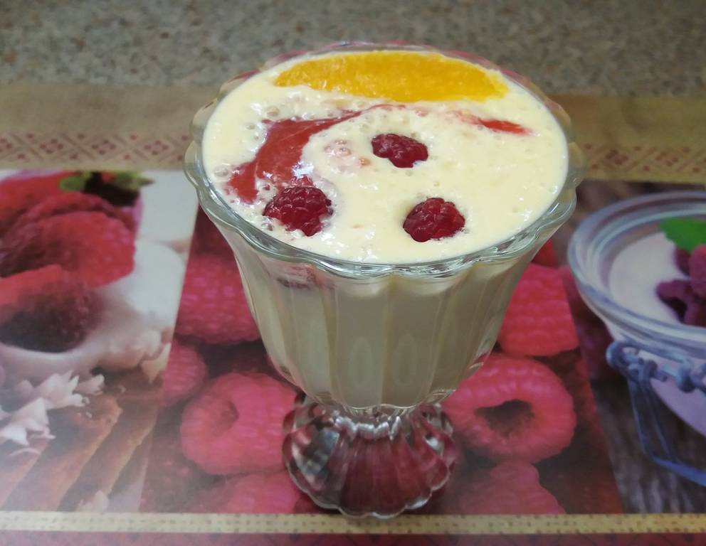 Man kann zum Orangen-Himbeer-Smoothie auch noch Vanilleeis dazumixen.