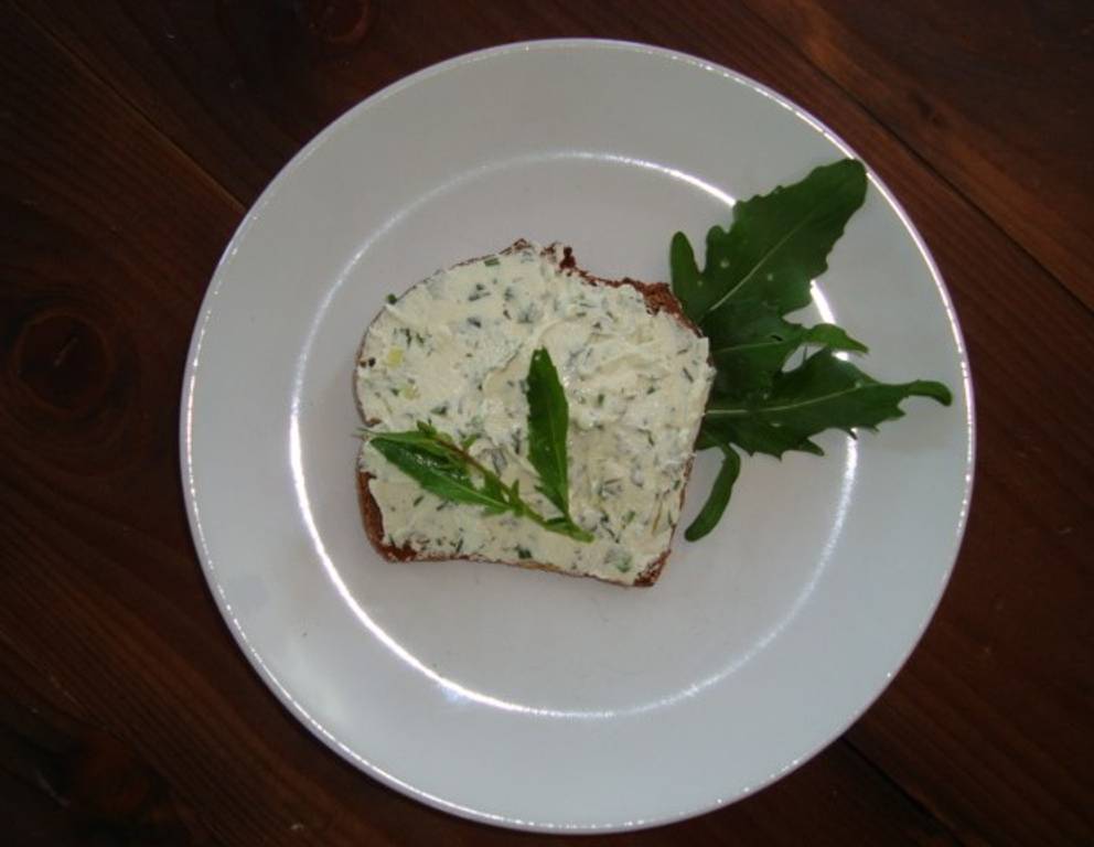 Wenn man es cremiger mag, kann man mehr Mayo nehmen. Der sommerliche Kräuteraufstrich schmeckt auf Vollkornbrot ebensogut wie auf Baguette. Belegt mit halbierten Cocktailparadeisern und etwas frischen Kräutern ist er auch fürs Auge ein Genuss!