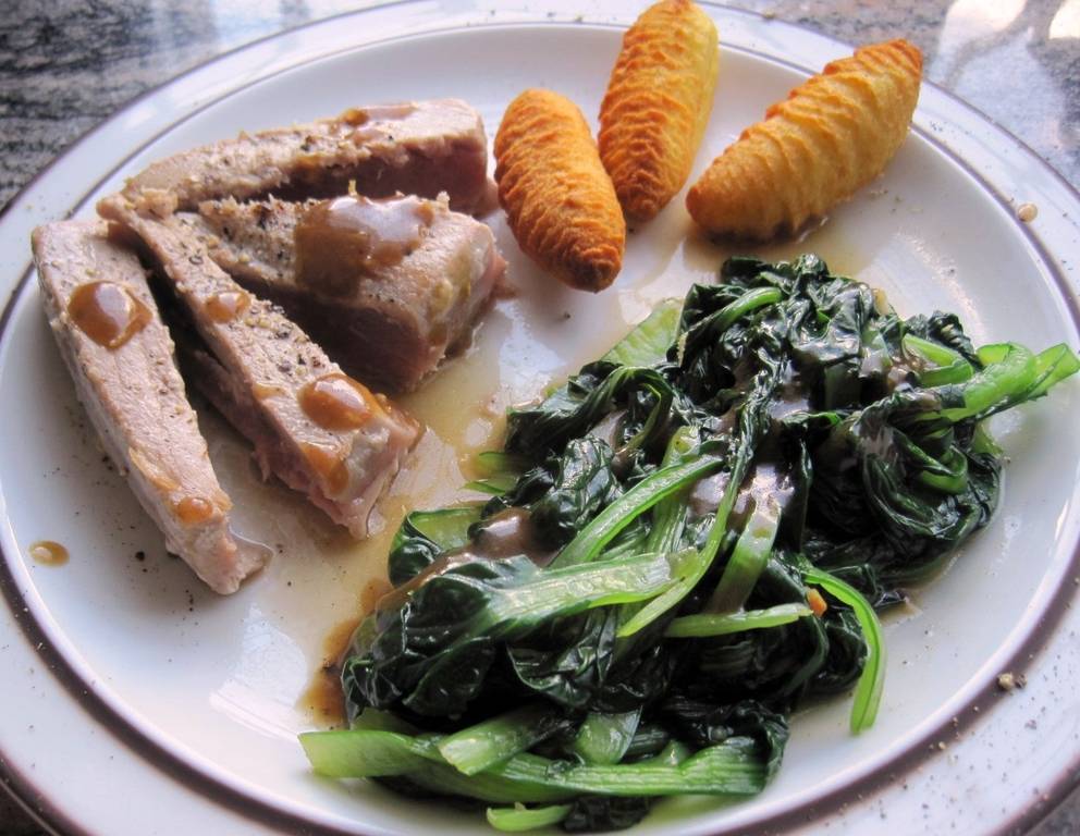 Als Beilage zum Thunfischsteak passen Kartoffelkroketten oder auch kleine Kartoffelpuffer oder Röstkartoffeln.