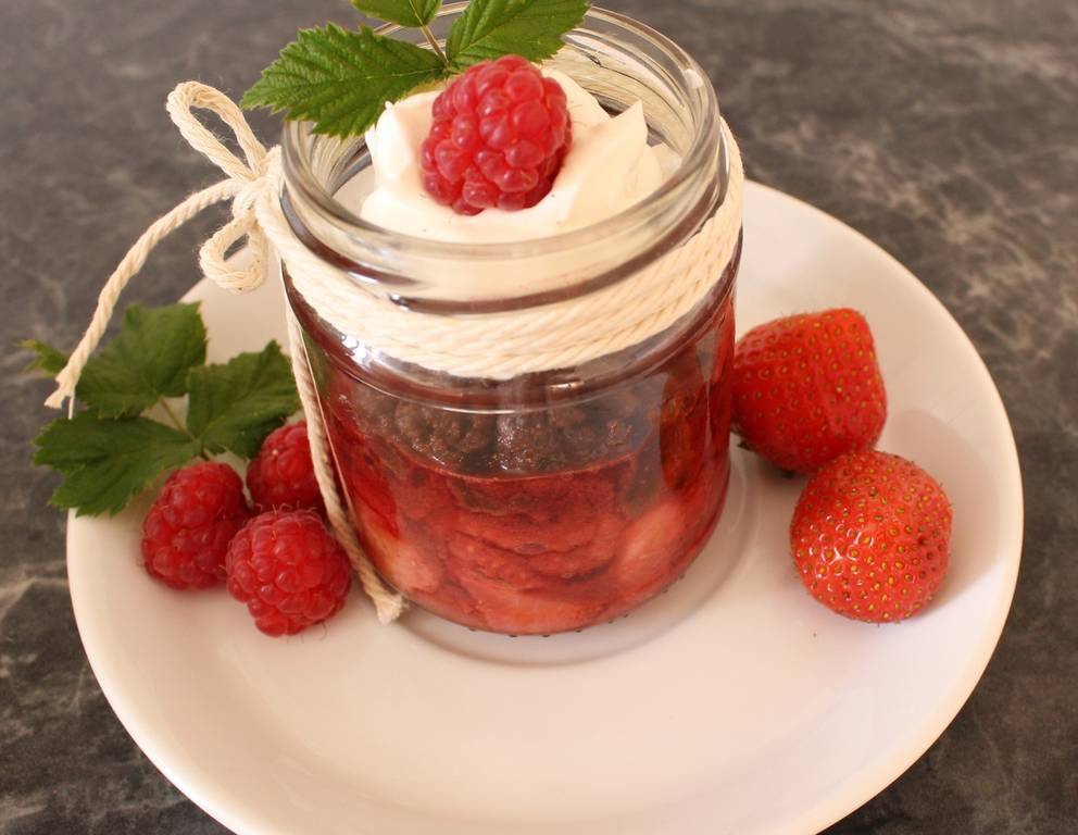 Nach Belieben kann man statt dem Vanilleobers auch Vanilleeis für das Beeren-Schoko-Crumble verwenden.
