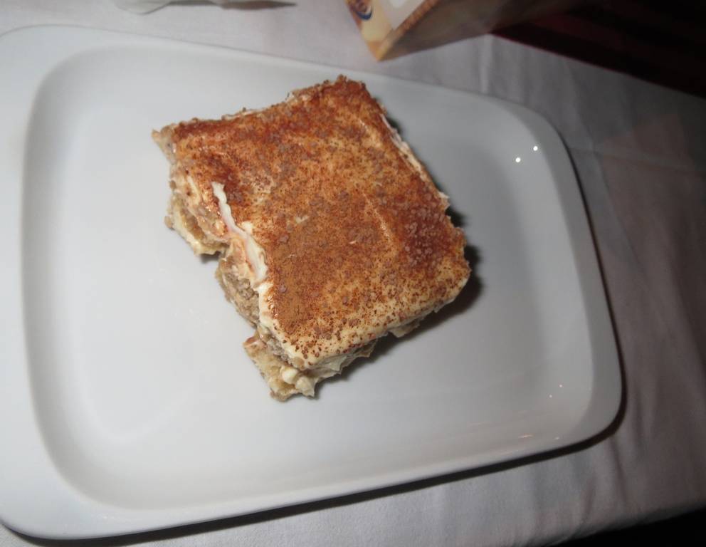 - Man kann zwischen den einzelnen Schichten Zimt oder Kakaopulver sieben. Die letzte Schichte bildet die Creme und wird noch mit Kakaopulver, welches darüber gesiebt wird, vollendet.