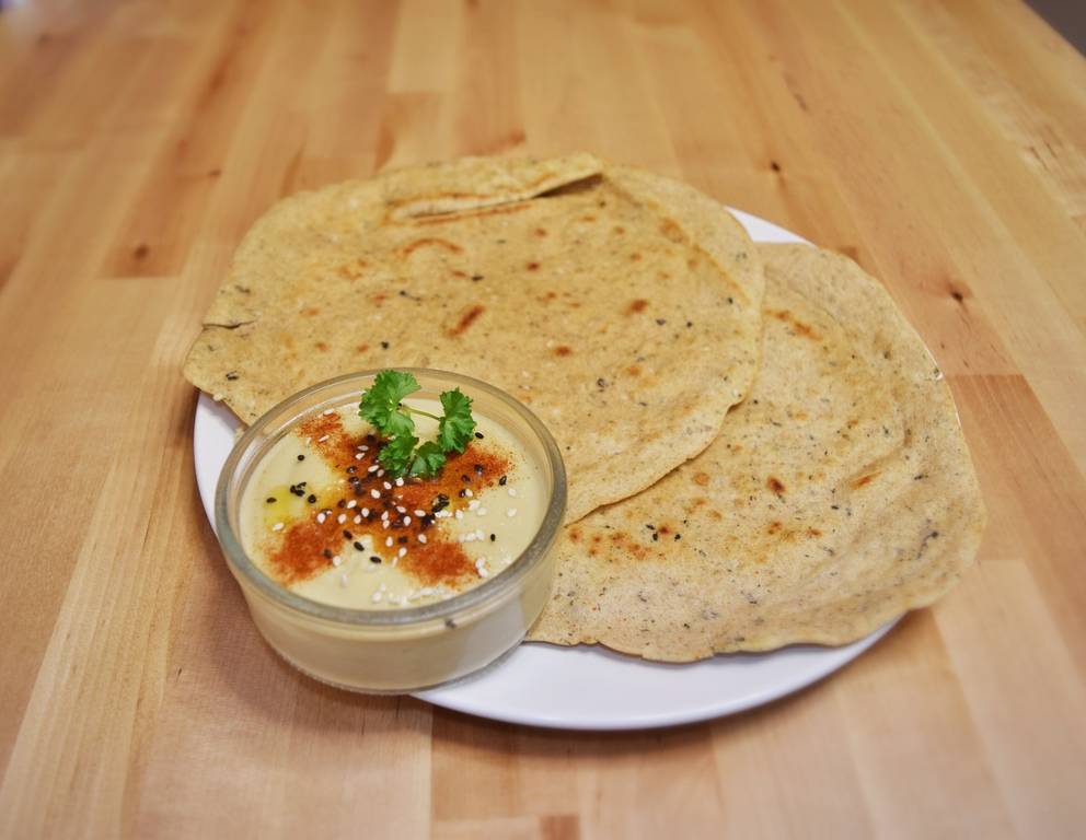 Mit Olivenöl und Petersilie obendrauf wird Hummus als Vorspeise zum Fladenbrot oder als Brotaufstrich serviert.