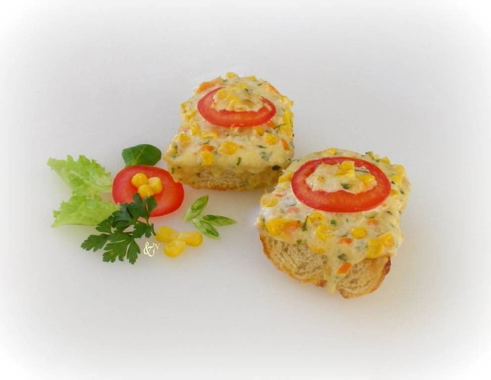 Je nach Geschmack kann dieser Snack auch mit anderem Gemüse, wie beispielsweise halbierten Maiskölbchen oder Tomaten, belegt werden.