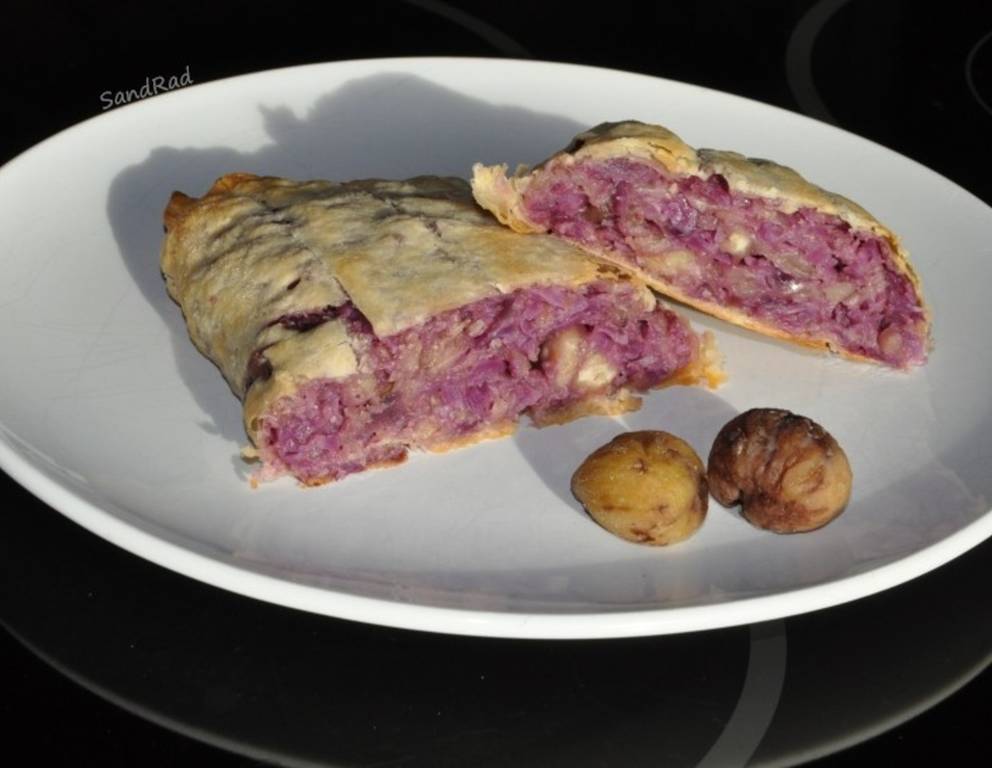 Der Maroni-Rotkraut-Srudel ist eine schöne Beilage, nicht nur zur Winterzeit. Für Wild, Rind oder als Vorspeise.
