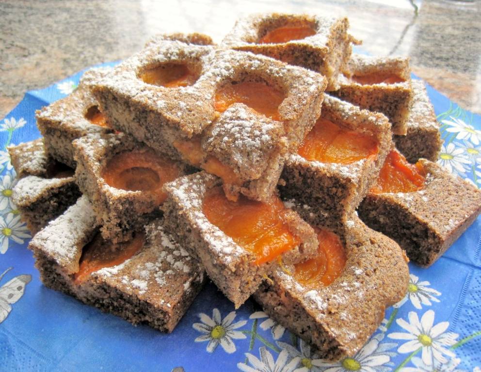 Den Mohn-Marillenkuchen kann man auch mit Weißmehl zubereiten. Allerdings sollte man die Backzeit verkürzen.