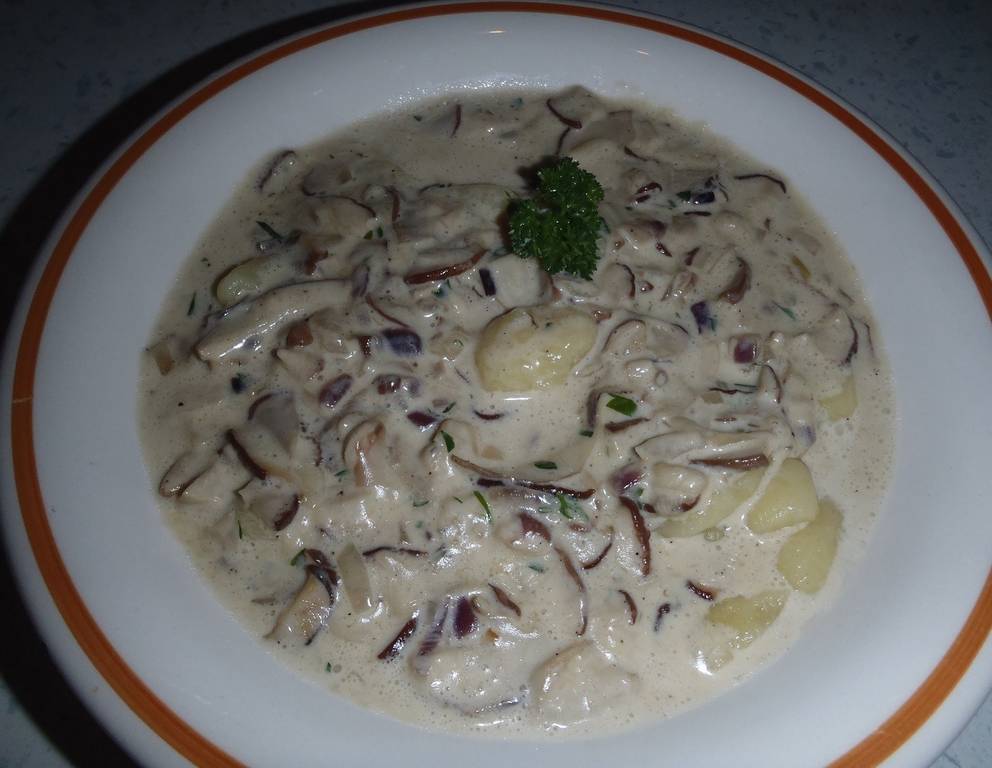 Man kann auch nur ein halbes Schlagobers verwenden und dafür mit einem guten Weißwein ablöschen. Die Steinpilzsoße schmeckt am besten mit selbstgemachten Gnocchi.