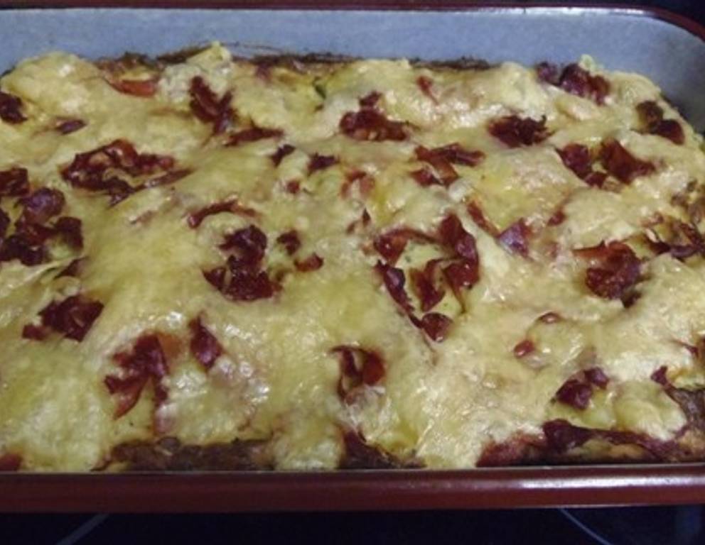 - Eine Auflaufform mit Butter ausstreichen, die Kartoffelmasse einfüllen, mit dem Schinken belegen und den geschnittenen Käse gitterförmig darauflegen. Im Backofen etwa 30 Minuten bei 200 °C backen.