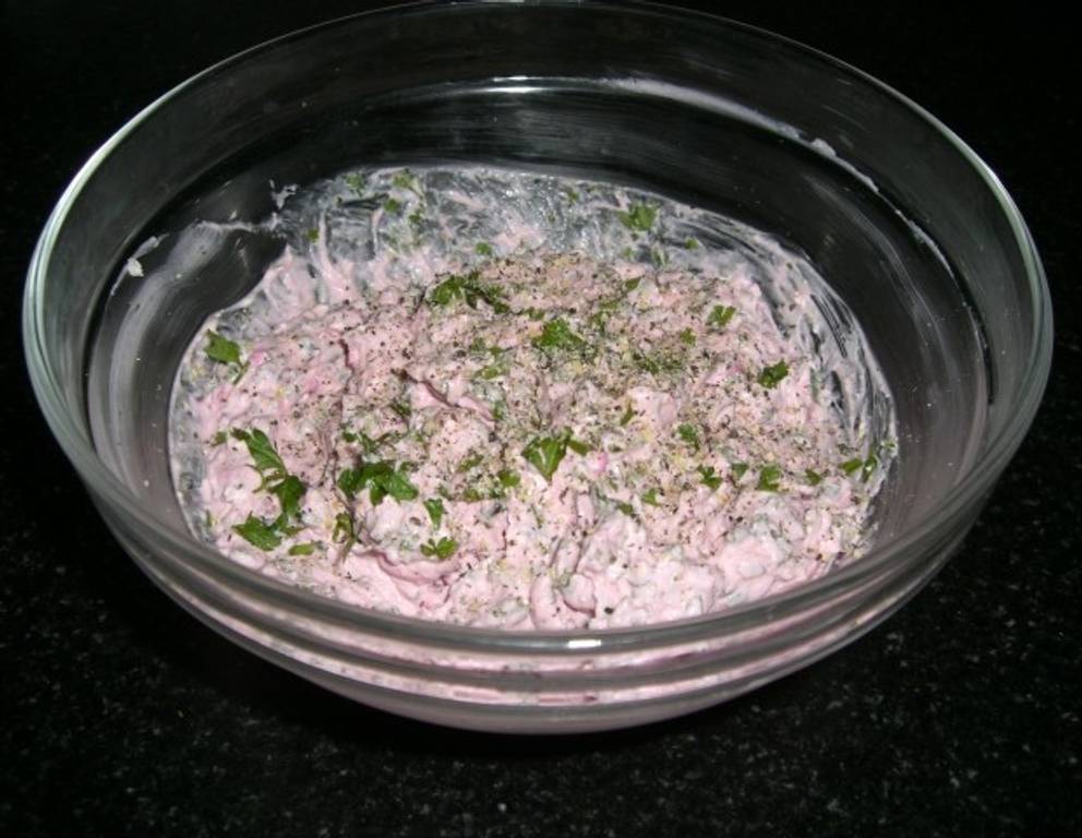 Den Rote Rüben-Aufstrich mit frischem Brot und Butter reichen. Ein herrlich frischer aromatischer Aufstrich. Die Menge des Meerrettich kann man je nach Schärfe-Vorliebe variieren.