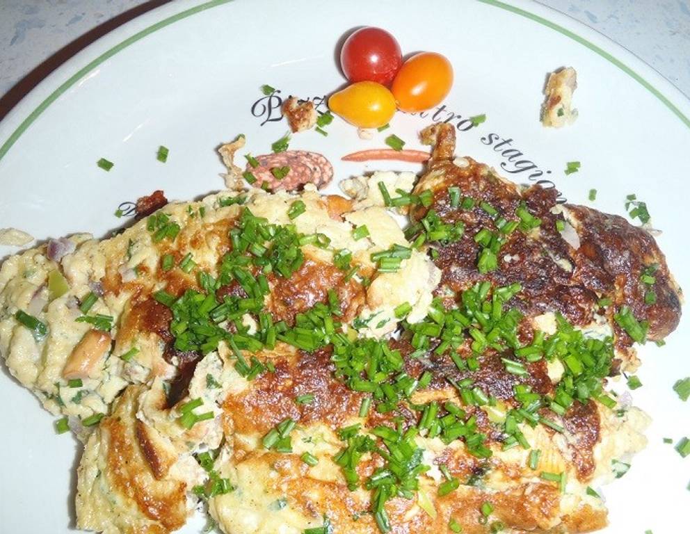 - Für das Waldpilze-Omelette die Eier mit Schlagobers verquirlen. Zwiebel, Schnittknoblauch, Rucola und Petersilie fein schneiden. Pilze waschen und zerkleinern.