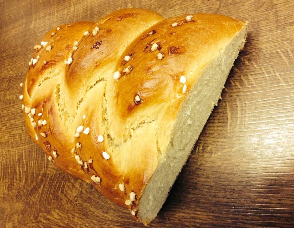 - Den Teig abdecken und auf das Doppelte (ca. 1 h) gehen lassen. Den gegangenen Germteig nochmals durchkneten und auf 3 Teile aufteilen. Den Zopf formen und auf ein Backblech legen.