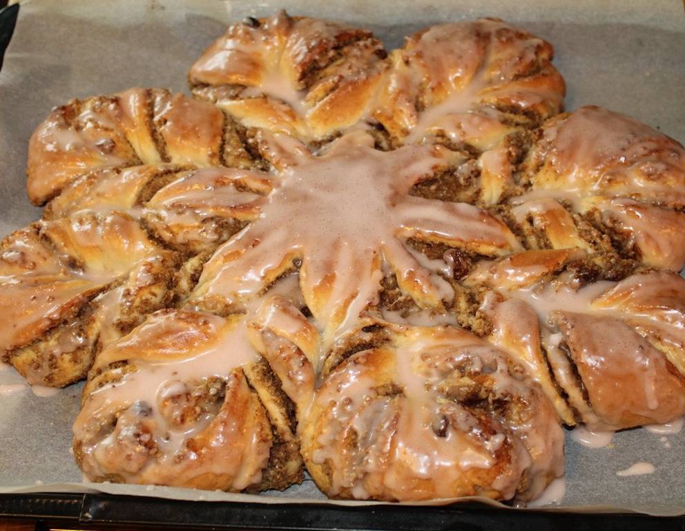 Wer möchte kann die Glasur für die Nussstrudelblume auch ohne Rum machen. Dann nimmt man am besten eine fertige Zuckerglasur.