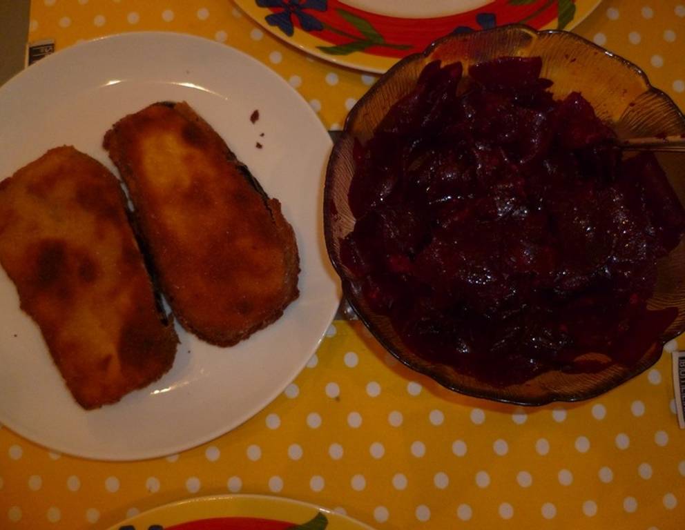 Die Panier schmeckt sehr gut, wenn man Knoblauchgranulat in das Ei gibt - passt vor allem bei Schnitzel aber auch bei gebackenem Gemüse sehr gut. Die gebackenen Melanzani mit Rote-Rüben-Salat schmecken auch sehr gut mit einer Kräutersauce und mit Petersilerdäpfeln.