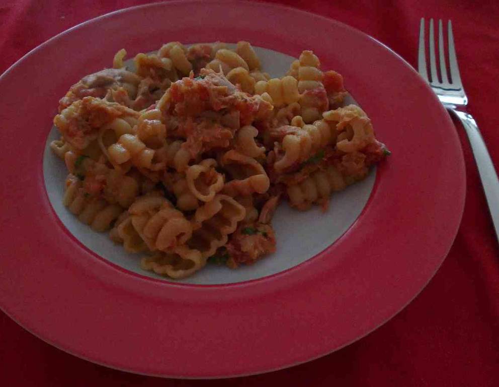 Die Thunfisch-Sauce mit Nudeln in bevorzugter Form servieren.