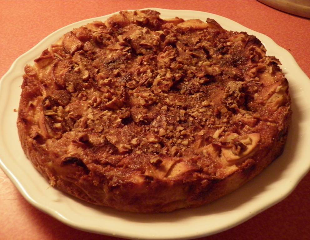 Der Apfel-Strudel-Kuchen schmeckt lauwarm am besten.