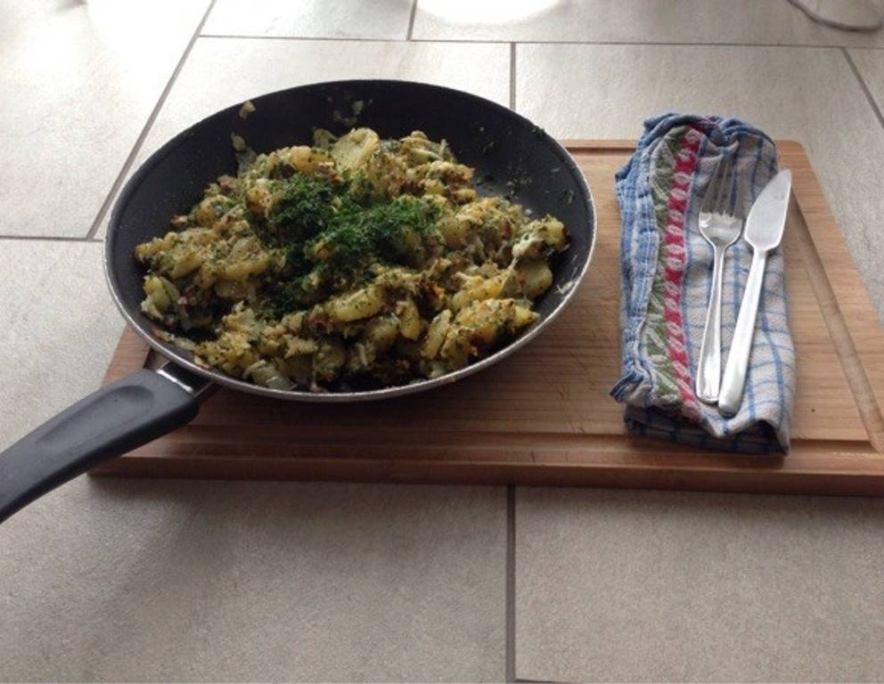 Zur Bauernpfanne passt grüner Salat mit Kernöl.