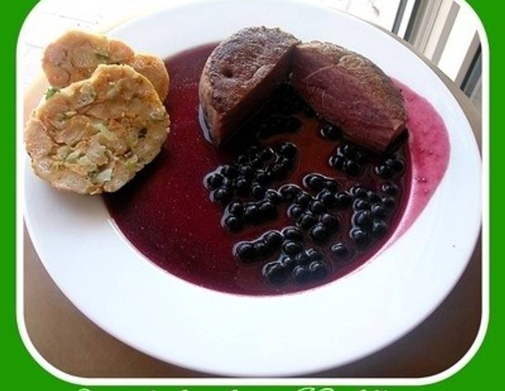 Zum Springbockfilet in Heidelbeersauce passen hervorragend Serviettenknödel. Alternativ zum Springbockfilet kann man auch Straußenfilet verwenden.