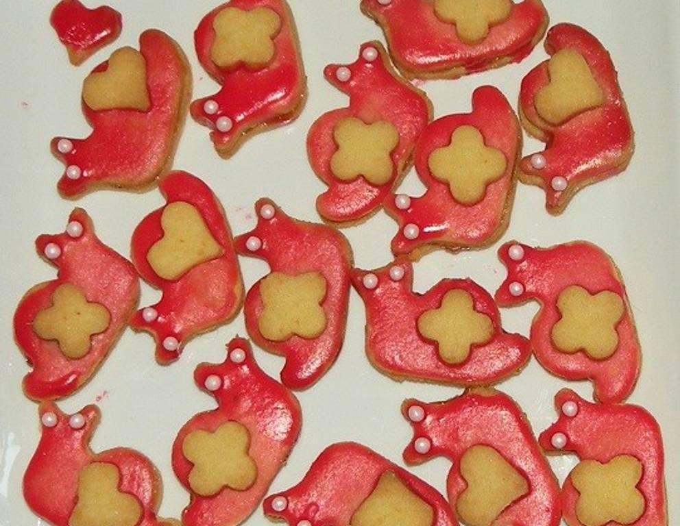 - Für die Zuckerschneckchen aus Staubzucker, Margarine, Mehl, Dotter und Vanillezucker einen Mürbteig bereiten und kühl rasten lassen, dann ausrollen, mit einer passenden Form kleine Schnecken ausstechen.