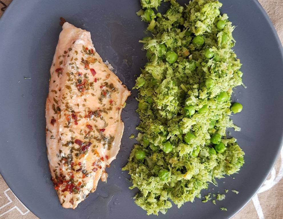 Den Goldsaibling mit Kartoffel-Selleriepüree kann man auch mit einem anderen beliebigen Gemüse wie zB gekochten Erbsen servieren.