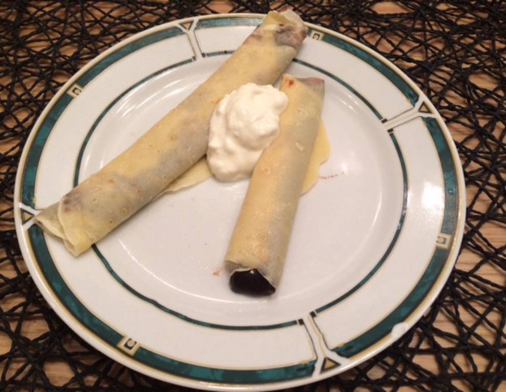 - Danach kann man die Palatschinken bei niedriger Temperatur in der Pfanne herausbacken. Um Böhmische Palatschinken zu machen, Powidlmarmelade als Füllung verwenden. Noch einen Klecks Sauerrahm neben die gerollte Palatschinke und servieren.