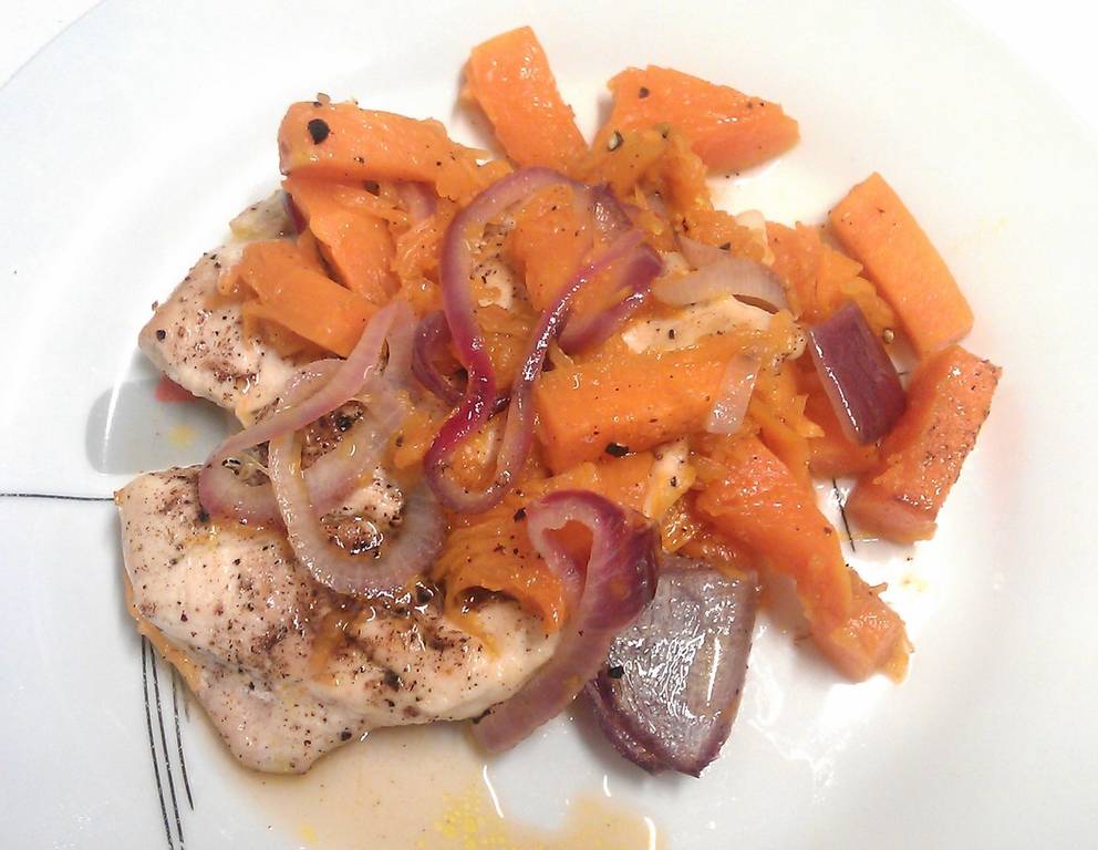 Durch die Zitrone und das Olivenöl erhält man eine delikate Soße, die man beim Anrichten über die Hühnerfilets gießen kann. Zum Kürbis-Zitronen-Huhn passen Rosmarinkartoffeln oder Reis.