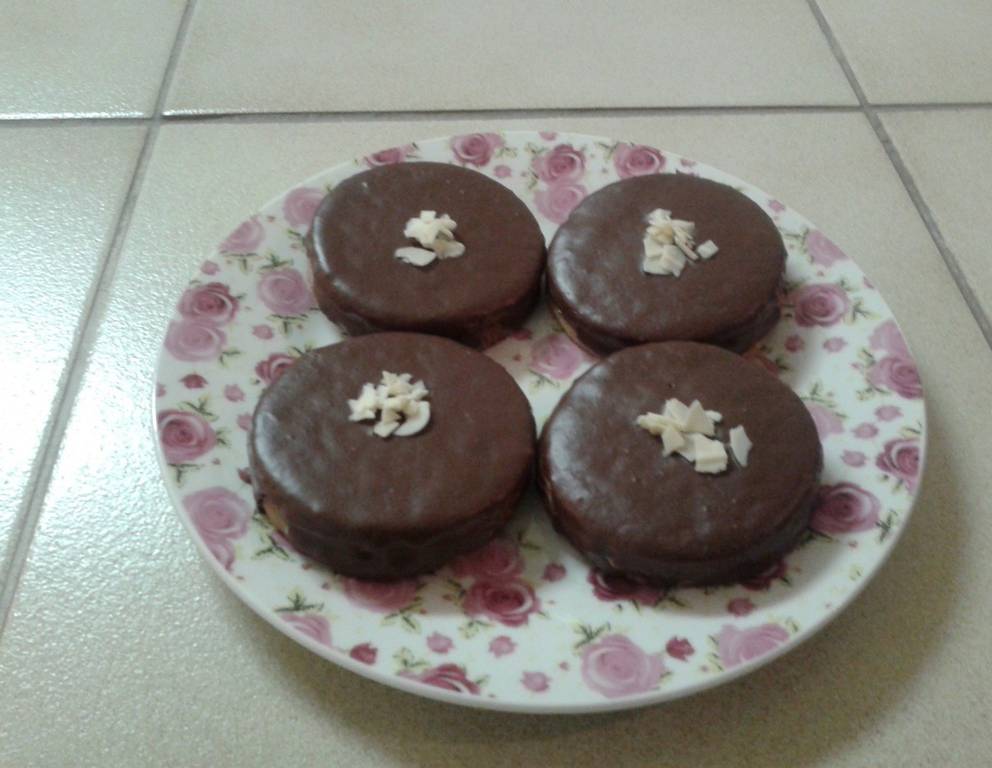 - Kokosfett und Schokolade erwärmen und glatt rühren. Jetzt die Törtchen mit der Glasur überziehen.
