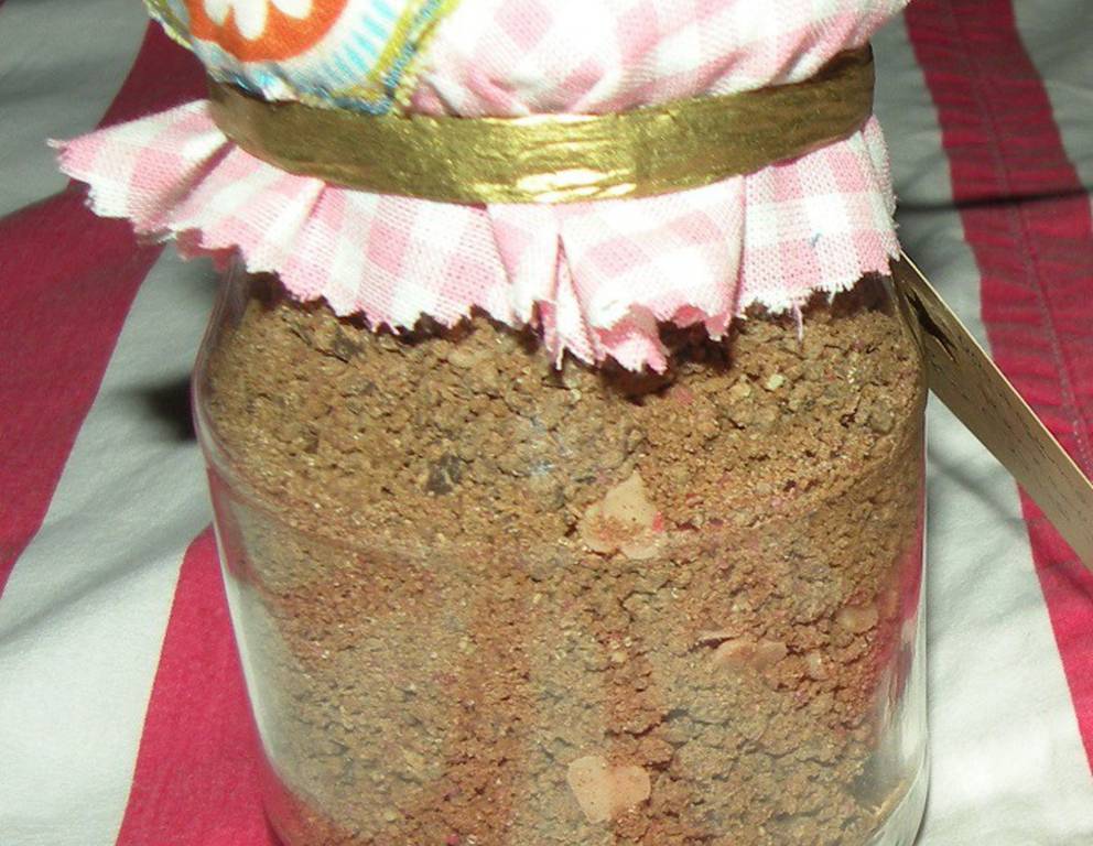 Auf das Kärtchen schreiben, dass etwa 1 TL der Mischung für die Heiße Schokolade für mein Herzilein in eine Tasse warme Milch gerührt wird.
