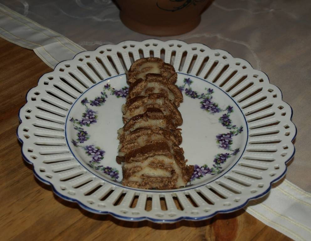 - Für die Marzipan-Keks-Rolle die Fredi-Kekse fein zermahlen. Mit Kakaopulver, Rum und Marmelade vermengen.