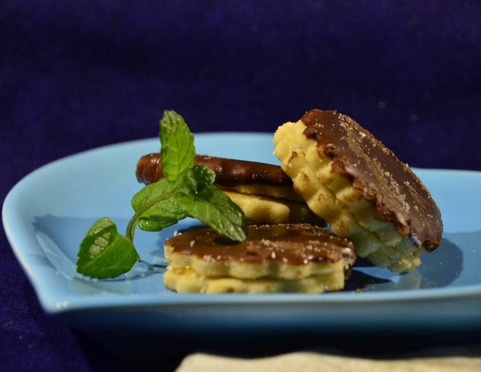 Die Mürbteigkekse sind individuell gestaltbar und können auch mit einer anderen Marmelade zusammengesetzt werden.