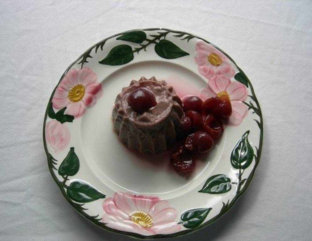 - Ein bis zwei Minuten unter Rühren weiterkochen lassen. Rum einträufeln und den heißen Pudding in die Förmchen füllen. Kirschen hinzufügen und fest werden lassen.