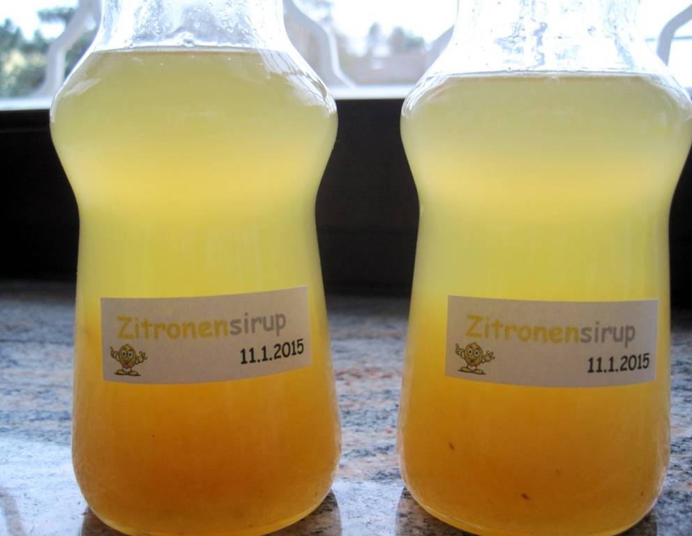 - Saft abwiegen und in einem Kochtopf mit derselben Menge Zucker mischen. Aufkochen und 5 Minuten kochen lassen. Den Zitronensirup so heiß wie möglich in die Flaschen füllen und sofort verschließen.