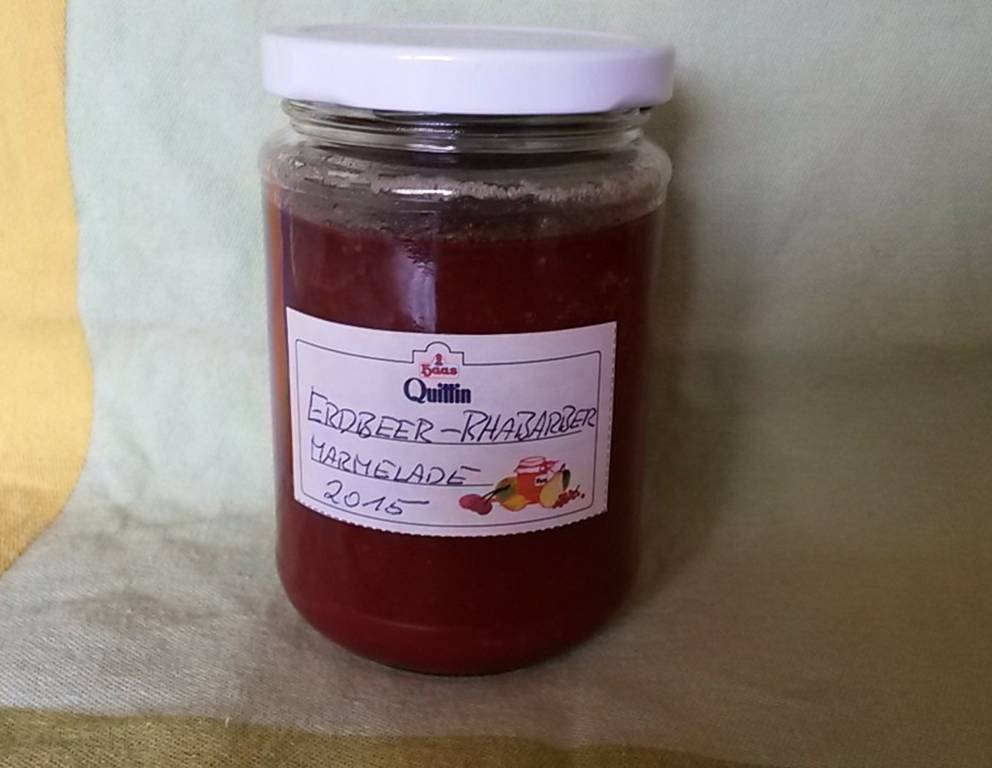 - Für die Frühlingsmarmelade den Rhabarber schälen, in 2 cm lange Stücke schneiden und mit den klein geschnittenen Erdbeeren vermischen.