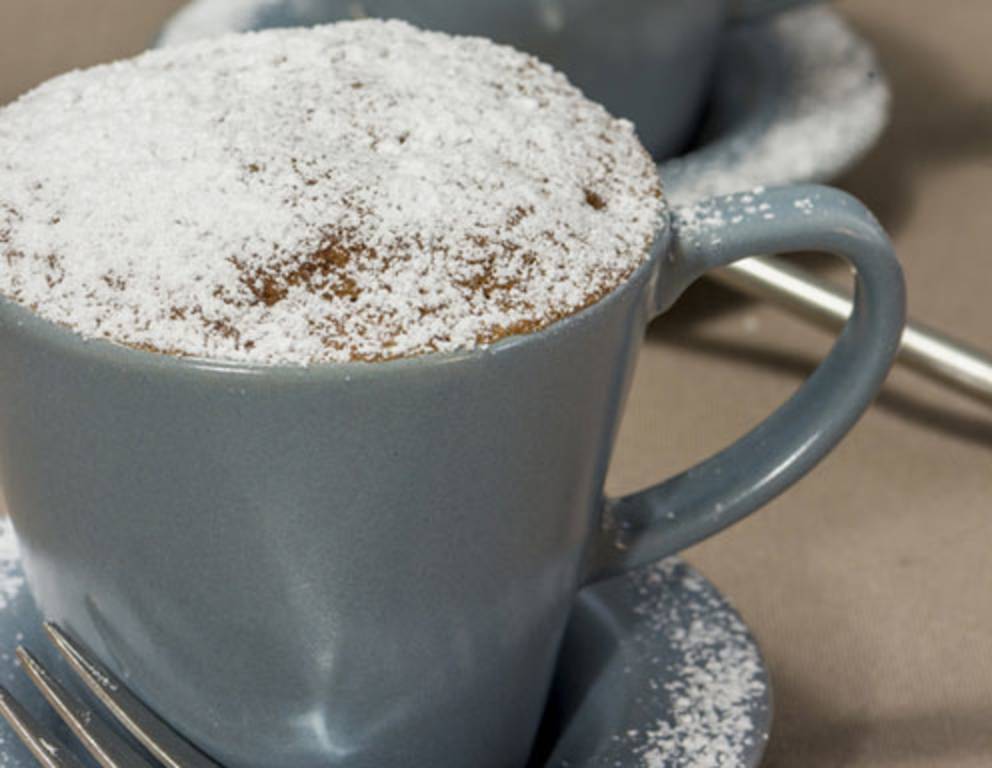 Kürbiskern-Tassenkuchen je nach Wunsch verzieren (Vanilleeis, Schlagobers, gehackte Kürbiskerne) und in der Tasse servieren.