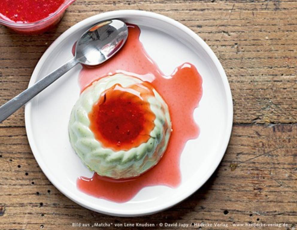 - Bild und Rezept mit freundlicher Genehmigung des Hädecke Verlages entnommen aus: „Matcha – der grüne Genuss“ von Lene Knudsen, ISBN 978-3-7750-0685-9, Hädecke Verlag Foto © David Japy aus „Matcha“ von Lene Knudsen, Hachette Livre-Marabout / Hädecke