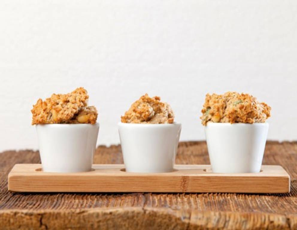 Die Joghurt-Frühlingszwiebel-Zwerge mit Pinienkernen können auch in Förmchen gebacken werden (z.B. in Muffinsförmchen).