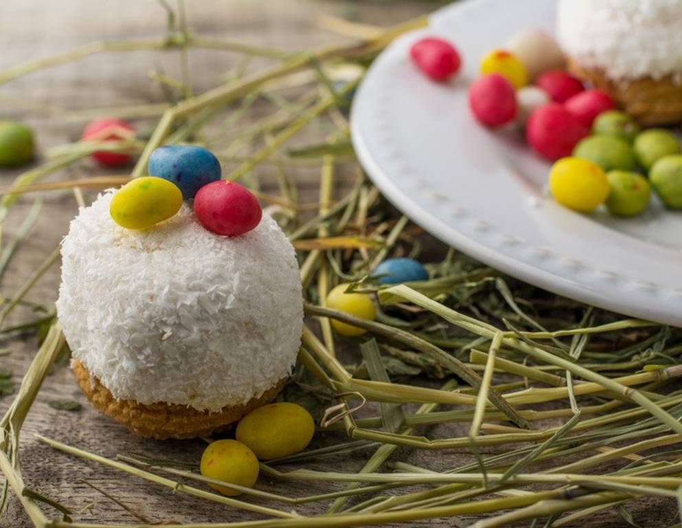 Wer Kokos besonders gerne mag, kann auch in den unteren Teil der Oster-Kokos-Cupcakes Kokosflocken mischen.