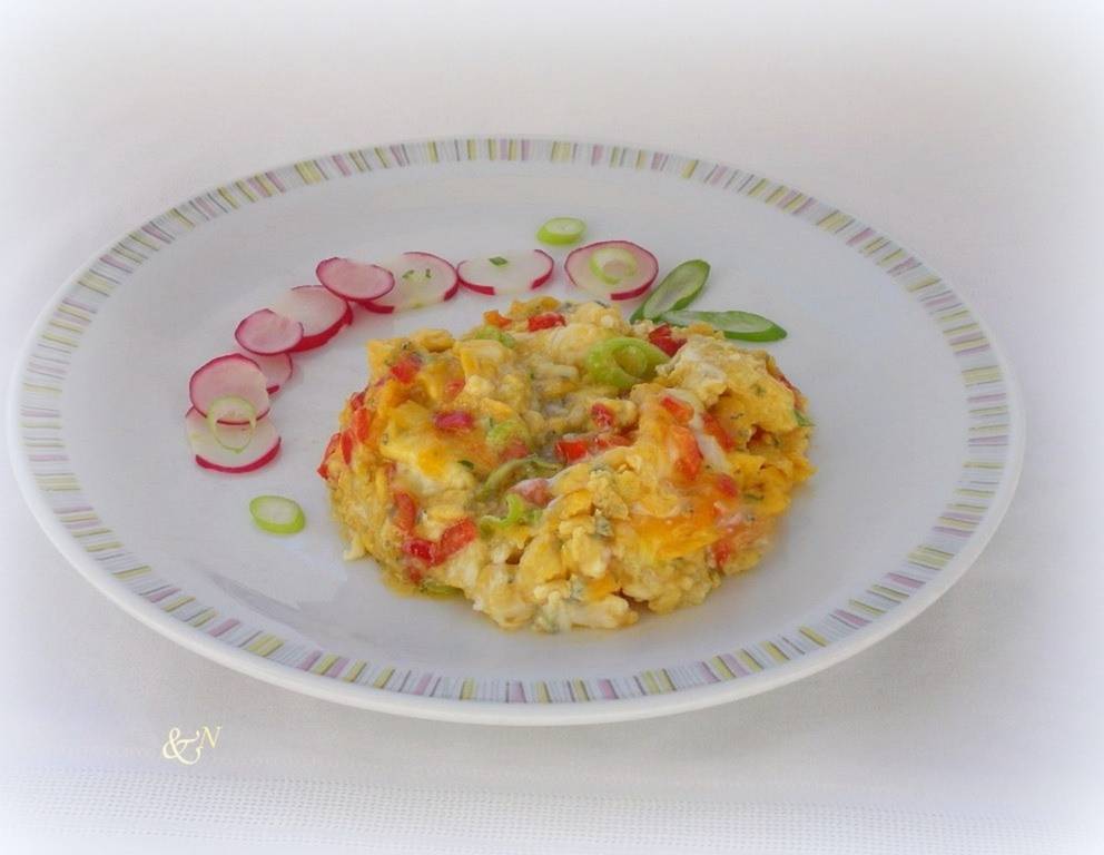 Zur Eierspeise mit Gorgonzola schmeckt hervorragend grüner, gemischter, Tomaten oder Radieschensalat.