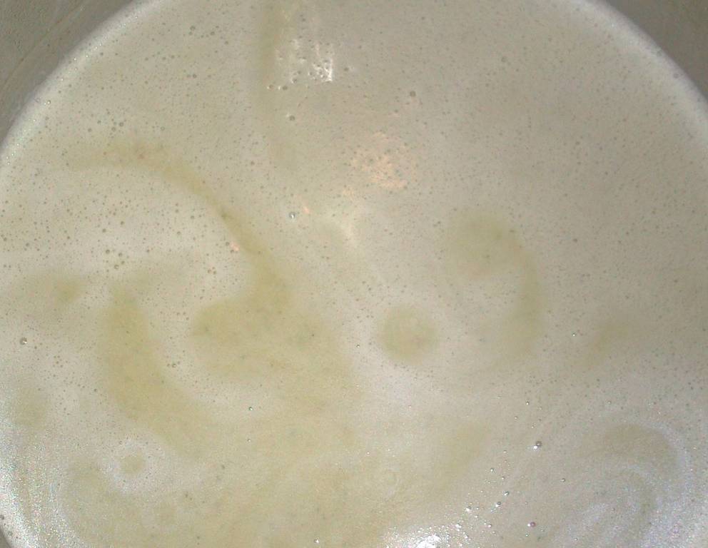 - Den Sauerrahm dazugeben und nochmals aufschäumen.