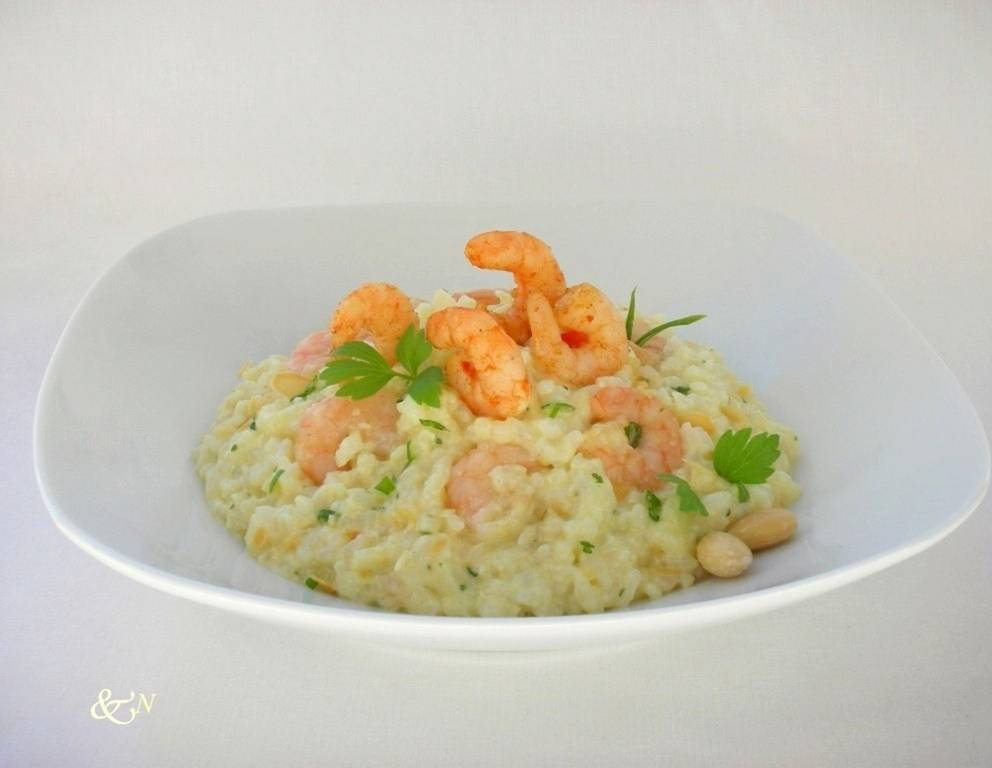 Zu Mandel-Risotto mit Garnelen, passt am besten grüner oder Gurken-Rahmsalat. Damit ein Risotto ganz sicher gelingt, sollte die Flüssigkeit heiß hinzugefügt werden. Am besten hält man es auf dem Herd warm.